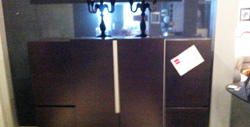 Mueble Outlet para aparador con 1,22 de alto por 1,47 de ancho con dos puertas y botellero central de 2.259 a 1.129 euros.